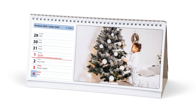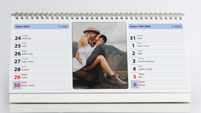 Týdenní kalendář, oboustranný potisk, kovová spirála, pevný karton